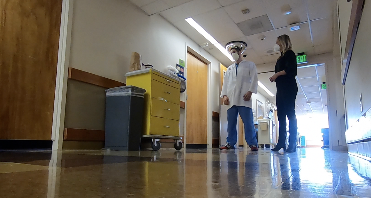 Right before Christmas, a U.S. Navy medical team was deployed to the hospital. Gavin said residents too were reassigned to help. Floor B7 was full completely with COVID-19 patients. Yellow carts lined the hallways.
