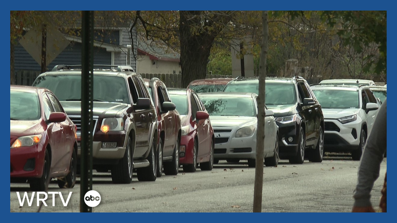 INDIANAPOLIS — On North Holmes Avenue, the line for Saturday’s food distribution wrapped around multiple blocks as families waited for help ahead of Thanksgiving.