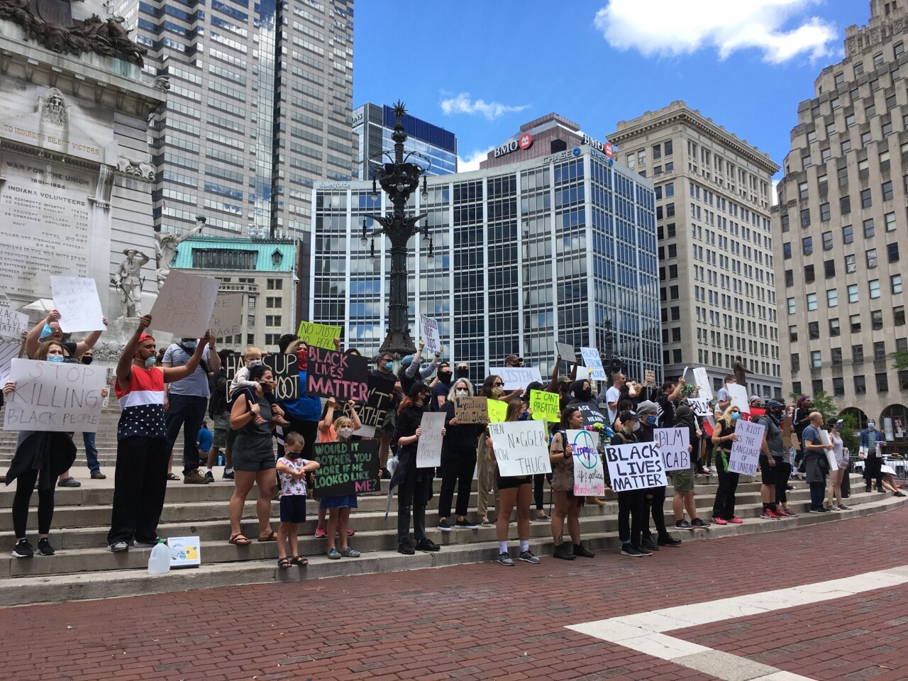 More protesters are now moving towards the Indiana War Memorial. They are chanting "Black Lives Matter!"