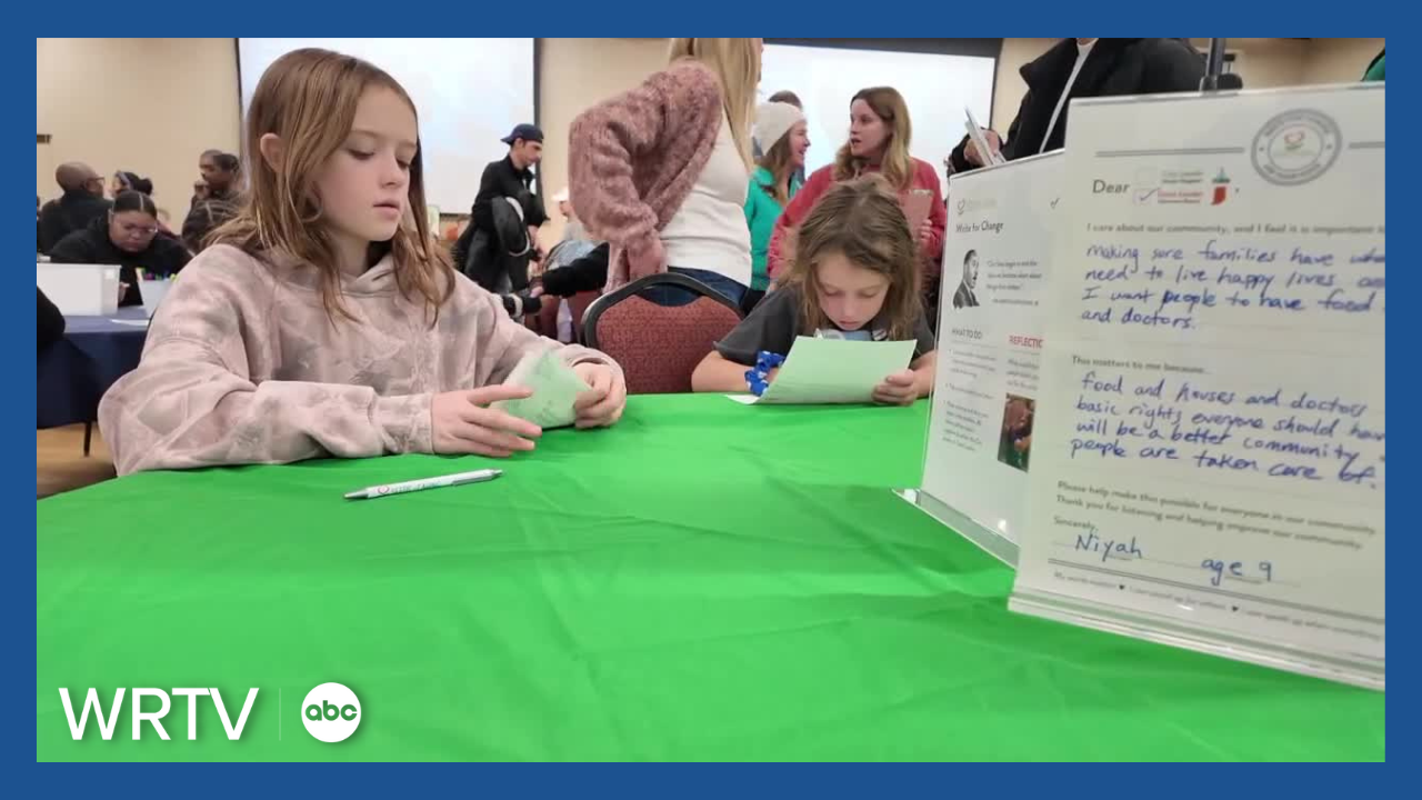 The kits packed by the children will be donated to homeless organizations in Indianapolis. The kids also made sun catchers for senior citizens in assisted living facilities and nursing homes to help brighten their days. Participants also learned about the work those nonprofits do and some shared messages they hope Indiana lawmakers will hear.