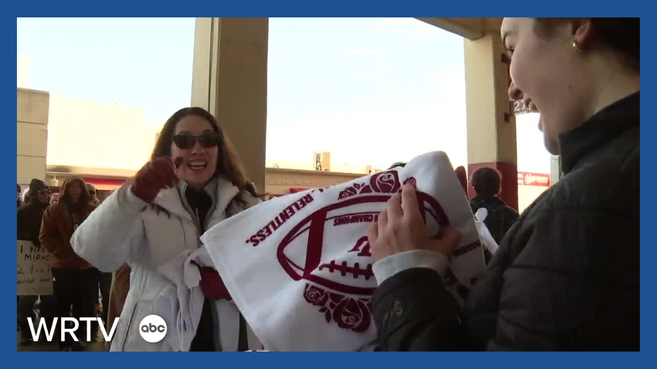 BLOOMINGTON — Indiana Hoosiers fans and alumni have waited generations to see their team in the Rose Bowl again. The enthusiasm for New Year's Day led fans to make a long line around Memorial Stadium for free Rose Bowl merchandise.