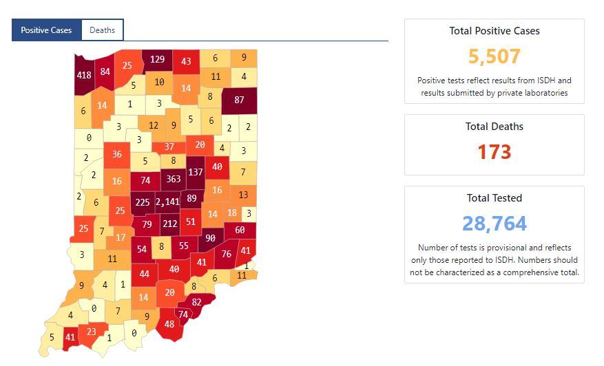 ISDH reports 34 more deaths bringing Indiana death toll to 173