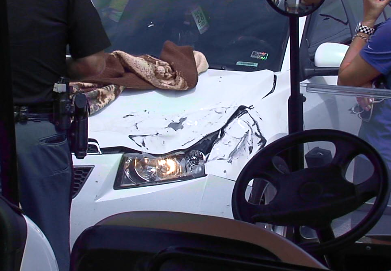 Although shaken by the experience, Matthews says she's just thankful it was her car that was hit and not a person.