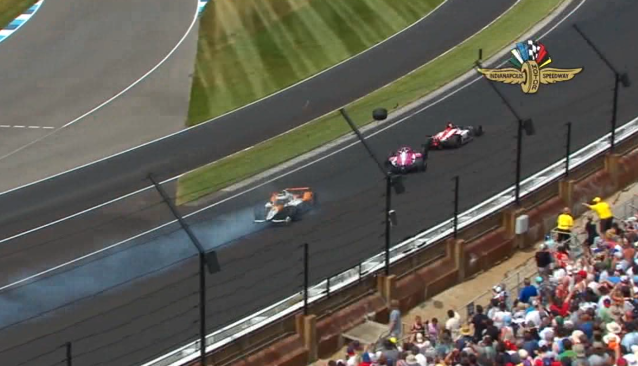 INDIANAPOLIS — There were some scary moments during the final laps of the 107th Indianapolis 500 when the tire flew off of Kyle Kirkwood's car and over the grandstands, narrowly missing the spectators.