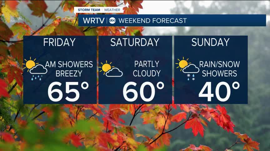As we look ahead to the weekend, this is when the really big changes will start to occur. Friday will feature some scattered showers and maybe even a few rumbles of thunder. Temperatures, though, will still be well above normal, in the mid-60s. It will also be a bit breezy.