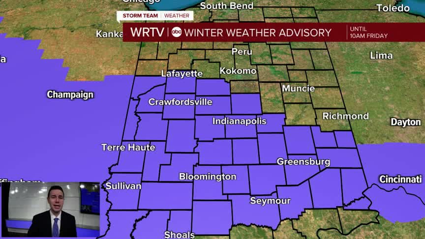A Winter Weather Advisory is in effect for areas along and SW of a Tippecanoe to Rush County line until 10am Friday. Some moderate to heavy snow could reduce visibility and create slick conditions, especially as you travel SW across the state.