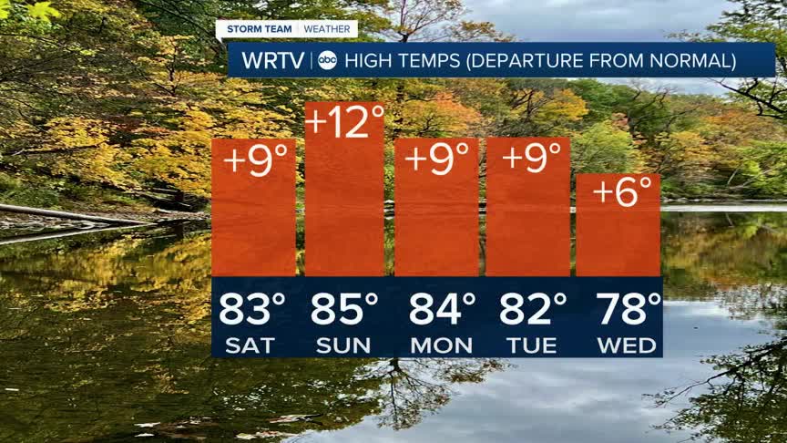 You couldn’t draw up better weather for the first weekend of fall and the last weekend of September. Mornings will be cool (in the low 50s), but afternoon temperatures will be running well above normal. Look for high temperatures on Saturday to be in the low 80s.