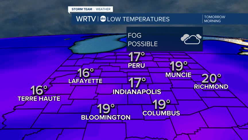 Overnight: Fog possible. Low: 17°