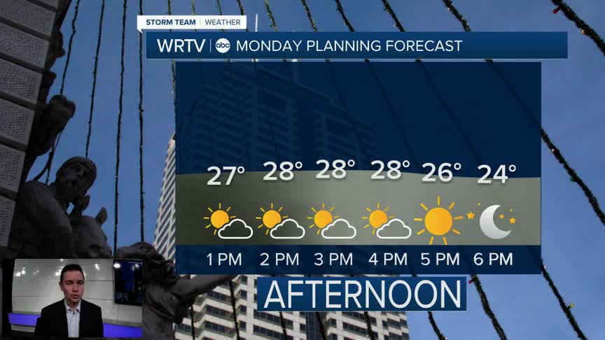 Much of our Monday comes with mostly cloudy skies. That said, we should see a little more sunshine working in than what we had over the weekend. Temperatures stay cold with highs in the upper 20s north and lower 30s south.