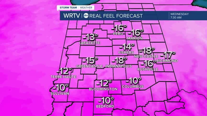 Bitter cold air is in place early this morning and it looks to stay through most of the week. Have an emergency cold weather kit in your car in case you get stranded. It will feel even colder Wednesday morning with forecast wind chills near 20° below 0°.