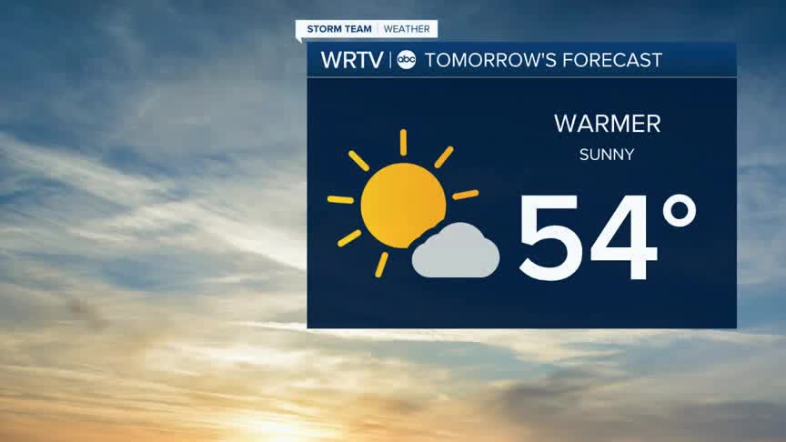 Tomorrow: Mostly sunny. High: 54°