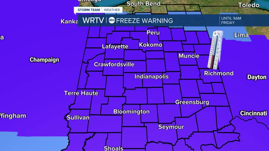 As expected, a Freeze Warning is in place for all of Central Indiana overnight, as temperatures will dip down to near or below freezing across the entire area.