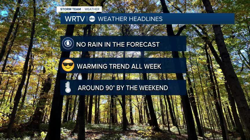 Wednesday will start with temperatures in the mid-50s and then warm back into the low to mid-80s across the area. Skies will be mostly sunny with low humidity.