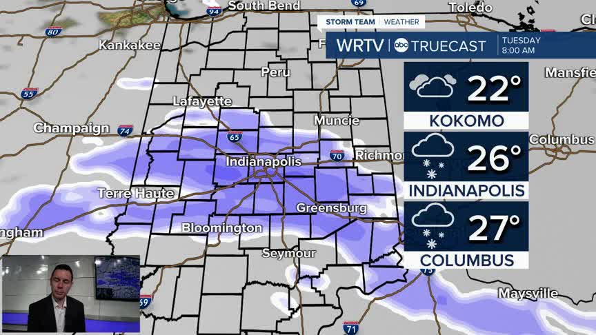 Another snow maker could have a little more potency to it Tuesday. There are still some questions in the exact track, but parts of Central Indiana could see another 1"-3" of snow.