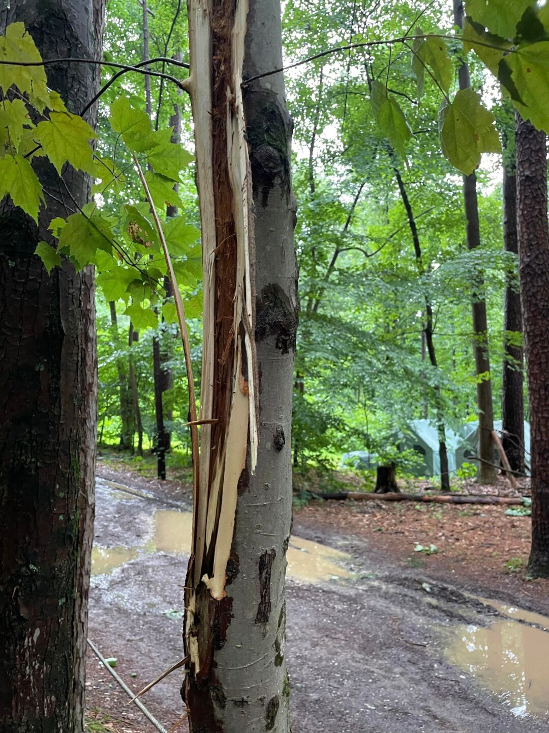 "On Friday, June 17, a tree was struck by lightening at Ransburg Scout Reservation outside of Bloomington, Indiana. A youth and his father attending camp were in proximity of the incident. As a precautionary measure, Camp Staff advised these two individuals to be evaluated at a local medical facility. We are happy to report medical personnel have cleared the father and son to return to activities at camp."
