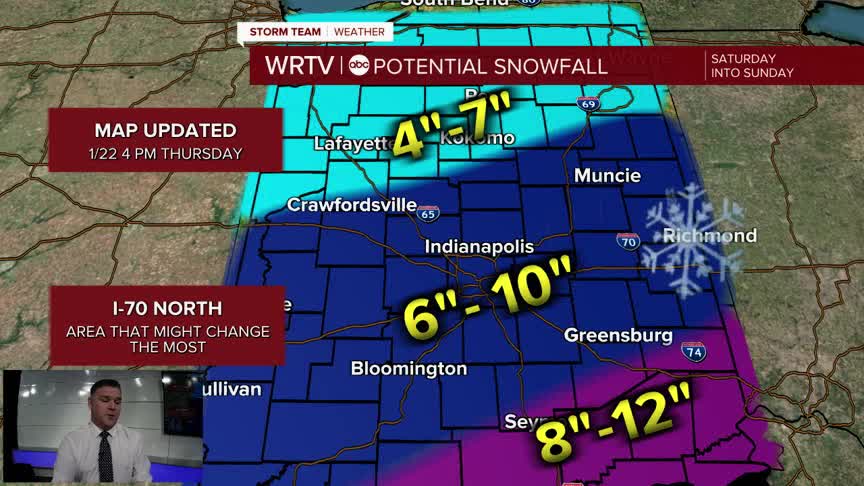 Some snow showers will develop Saturday morning in southern locations. It may take a bit longer for the snow to start in northern areas due to a lot of dry air in place. For those north of Indy, the snow really won't get going until Saturday evening. Saturday morning plans should be just fine. Conditions will deteriorate throughout the afternoon from southwest to northeast. The brunt of the storm will arrive late Saturday into the overnight hours of Sunday morning.