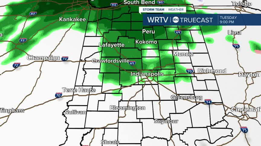 Tuesday is looking mostly dry, but late Tuesday evening, a few light rain showers begin. These continue Tuesday night into Wednesday.