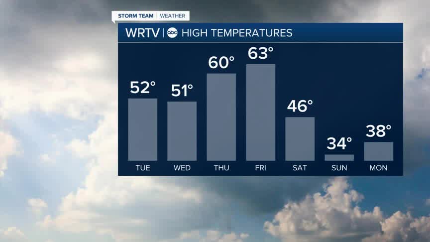 Wednesday will be the brightest day of the week before more rain returns on Thursday into Friday. The rain could be heavy for some, and thunder isn’t out of the question. However, with the warmth will come highs in the 60s for both Thursday and Friday—well above the normal high of 36°.