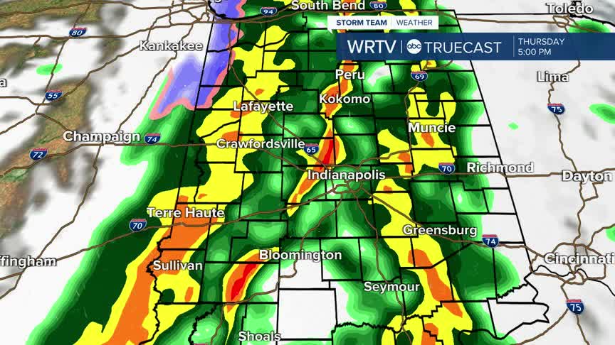 The steadiest rain happens in the late afternoon through early evening. Rain could be heavy at times. Thunderstorms are also possible within this line.