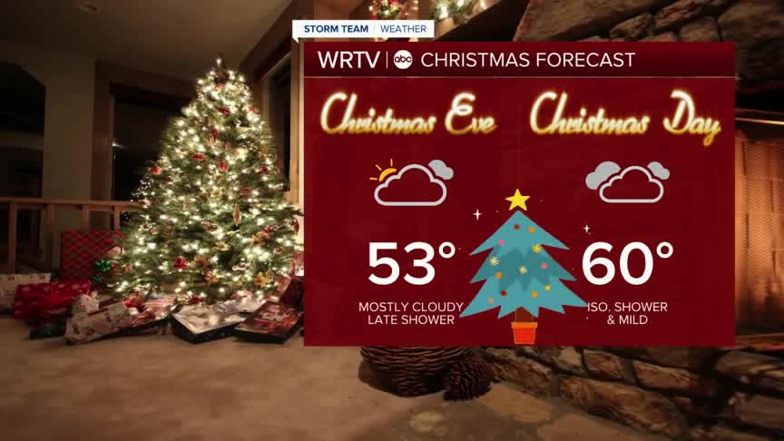 Looking ahead to Christmas Eve and Christmas Day, it will remain mild, with near-record temperatures expected on Christmas. Indianapolis should be around 60°, though there will likely be a significant temperature spread from north to south, with cooler highs in the 50s to the north and mid to upper 60s to the south.