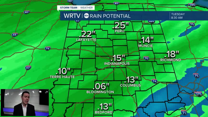 Clouds return Monday, but rain holds off until Monday night. Temperatures stay warm enough that this is all a rain event for us. Showers should end Tuesday morning.