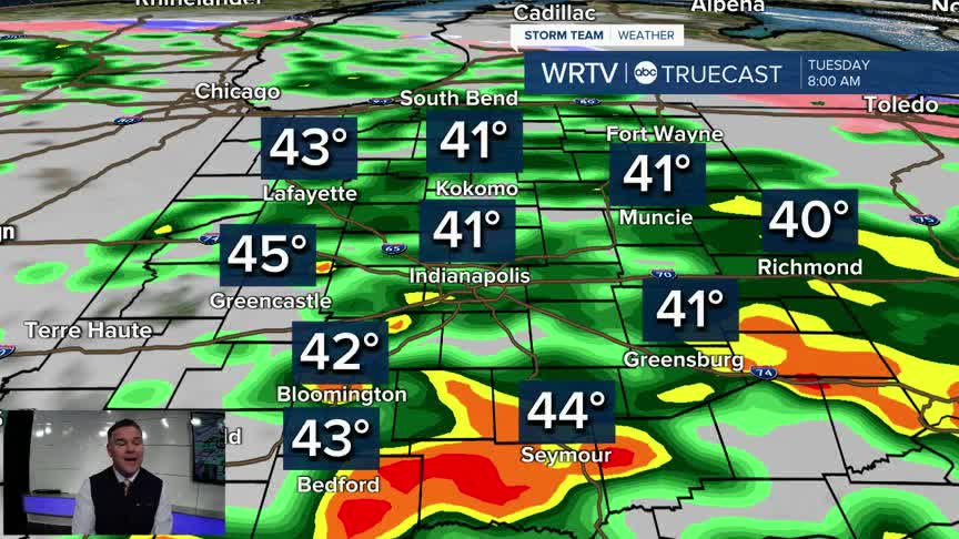 Temperatures will be above freezing for everyone overnight, so we won’t have to worry about any wintry precipitation here in central Indiana. However, if you are driving to the northern part of the state, you might encounter a mix of precipitation. Any significant accumulating snow will remain in Michigan.