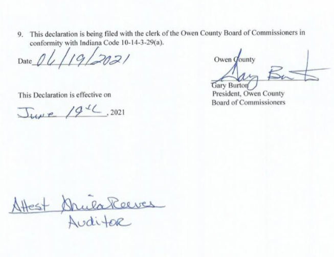 OWEN COUNTY — The Owen County Commissioners have declared an "Emergency Declaration of Local Disaster" due to the severe damage to county roads because of the recent heavy rainfall.