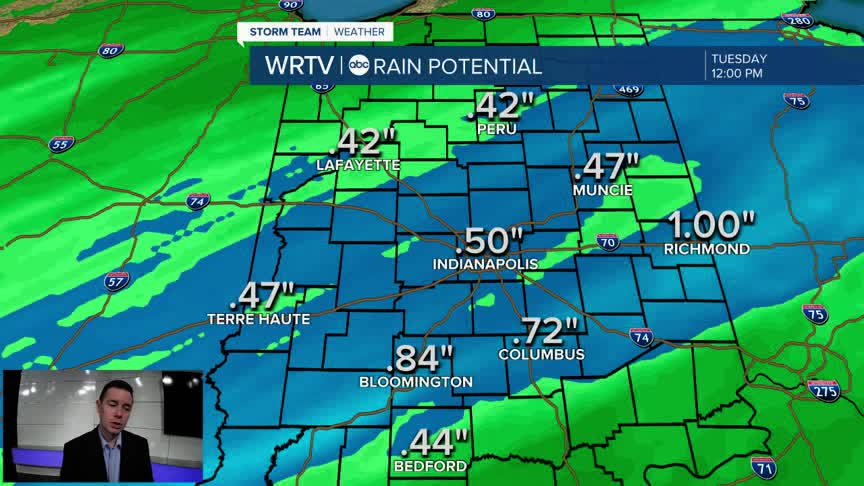 Rain returns to the area Monday night and will be fairly widespread through Tuesday morning. Overnight temperatures stay in the 40s, so this is all a rain event for us. Rainfall amounts look to be on the order of a quarter to half inch for most of us with some locally higher totals.