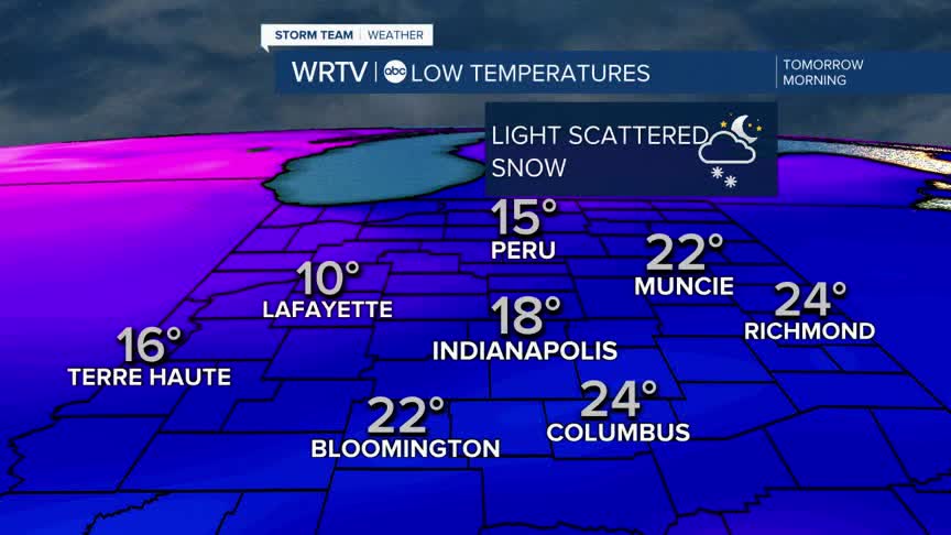 Bitter cold air fills in for the rest of the week. Temperatures will drop into the teens and even single digit range overnight with highs capped in the 20s and 30s. It will be cold enough to support some light scattered snow Wednesday night into Thursday. Totals look very low.
