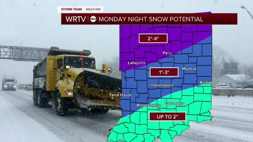 Another round of snow is on the way for Monday night into Tuesday morning. There is a winter weather advisory in place from 7 pm Monday to 7 am Tuesday.