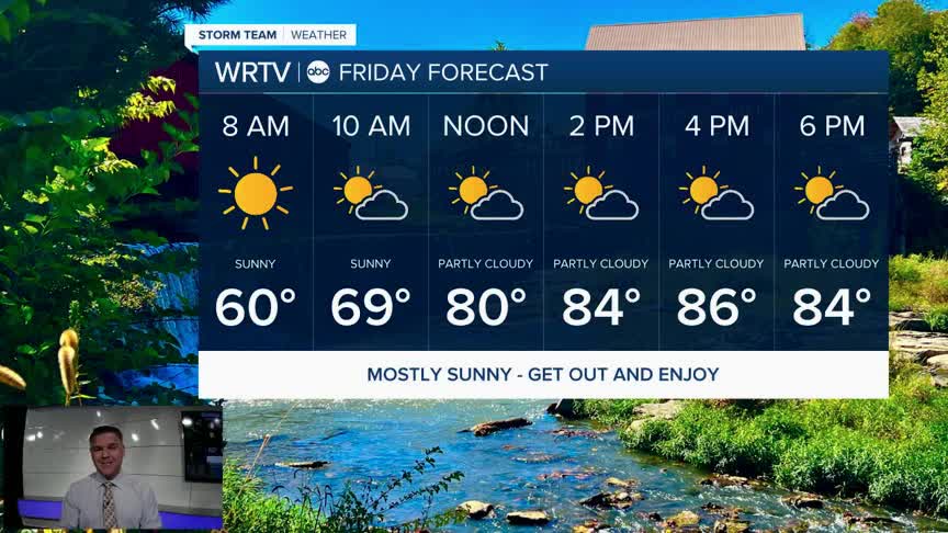 Friday: Mostly sunny and warm High: 87°