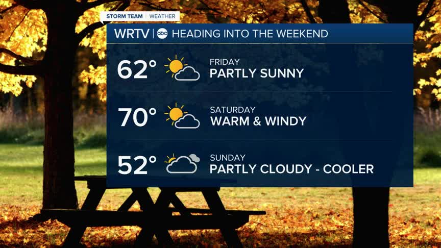 Our normal high for this time of year is 53 degrees. We'll be about 10° above that on Friday, and nearly 20° above that on Saturday. Skies will be partly cloudy and the wind will be fairly light on Friday. High school playoff games look to be in great shape if your team is still in it. If you’re heading out in the evening, you’ll probably only need a light jacket.