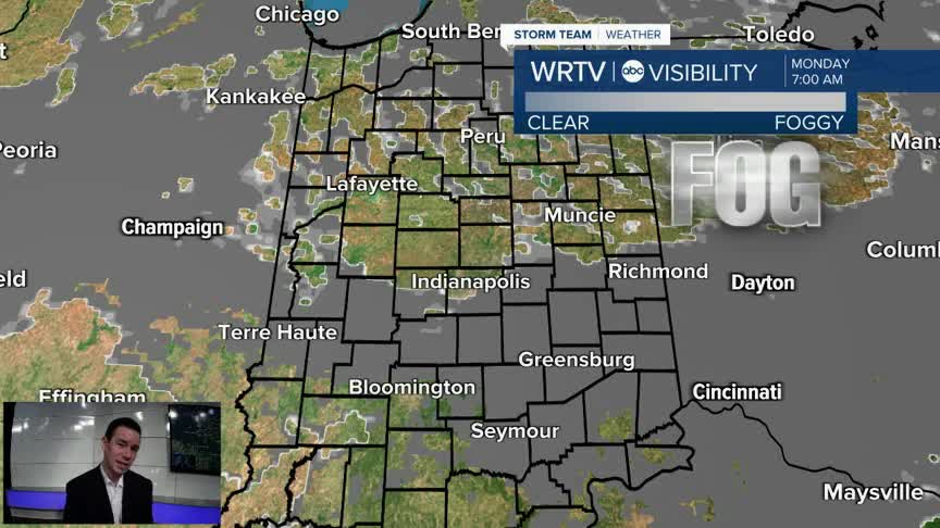 Fog continues to develop through Monday morning. The lowest visibility will be over areas that saw rain over the weekend. Some outlying spots could dip into the lower 30s. That means we can't rule out isolated slick spots. There is a Dense Fog Advisory for areas south of Indy through 10AM Monday.