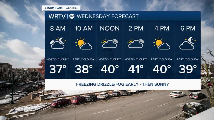 The rest of Wednesday will be dry with partly to mostly cloudy skies. Temperatures will once again be above freezing, in the low 40s.