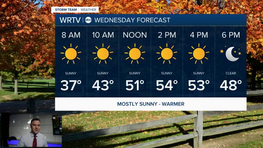 Wednesday will bring sunny skies and warmer temperatures for everyone. Our normal high for this time of year is around 54°, and that's where afternoon temperatures will level off. Winds will be fairly light as well.