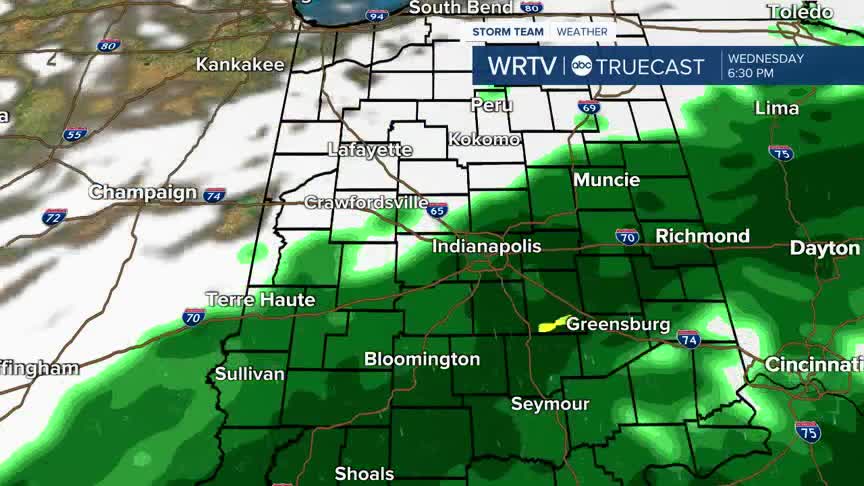 Most of the rain will fall near the Indy metro area and south. Some totals could end up near the .75 to 1.25" range. Rain totals fall off quickly as you head north.