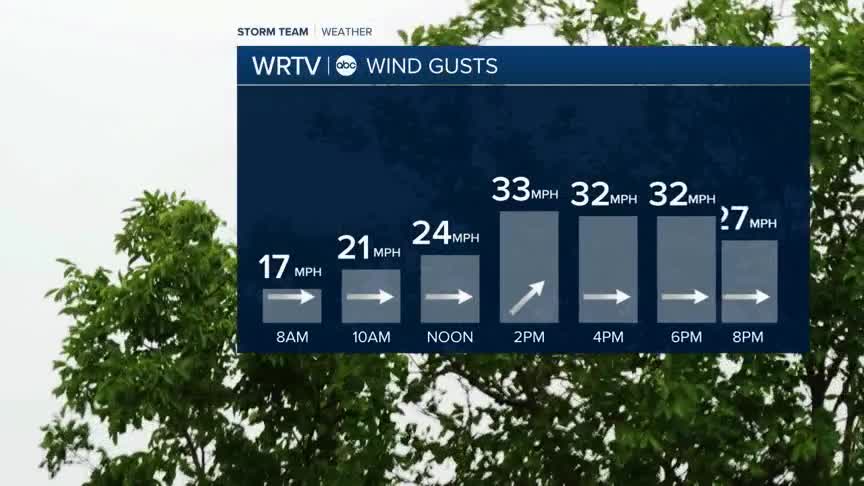 We are off to a warmer start for our Tuesday, but it comes with some wind. We could see gusts today in the 30+MPH range. This is all from a weak frontal system that has the potential to produce a few scattered showers this afternoon.Overall, the rain looks very spotty and light. Here is a snapshot of what radar could look like by the afternoon.