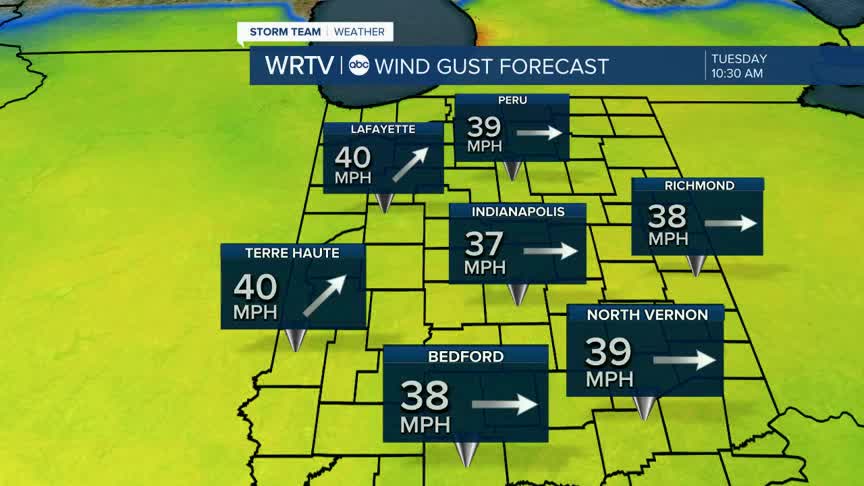 We are off to a warm start to the week. The trade off is dealing with stronger winds. Gusts will be as high as 40 miles per hour. Monday afternoon will land in the mid 70s under mostly cloudy skies. That is well above average for this time of year. It gets even warmer tomorrow. We expect the low 80s. The record high temperature is 85° so we likely fall short.