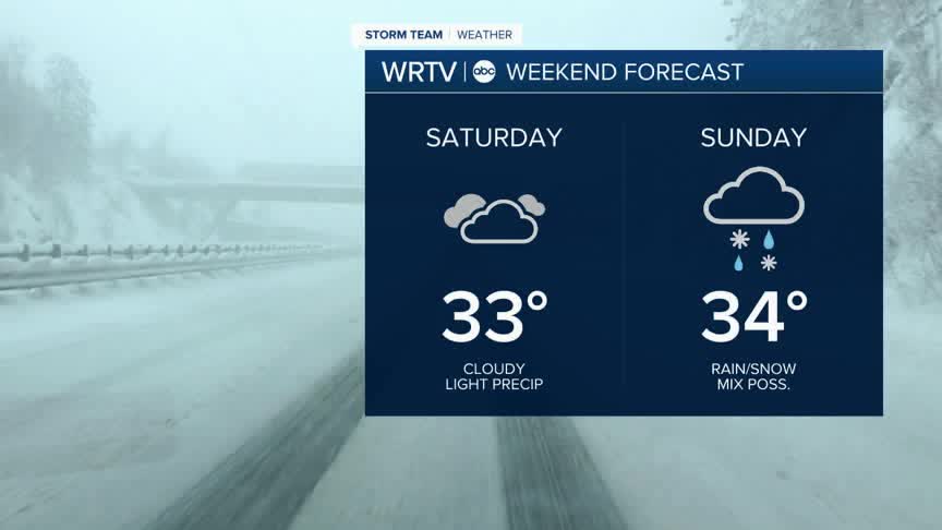 It is another winter-like day with temperatures staying just below the freezing mark. Heading into the weekend, things look a little more active. Saturday ends up mostly cloudy with a chance for some light mist and drizzle. Sunday, a fast moving system brings light snow north and some rain south. Any totals look very low, but please check back for updates on that system.